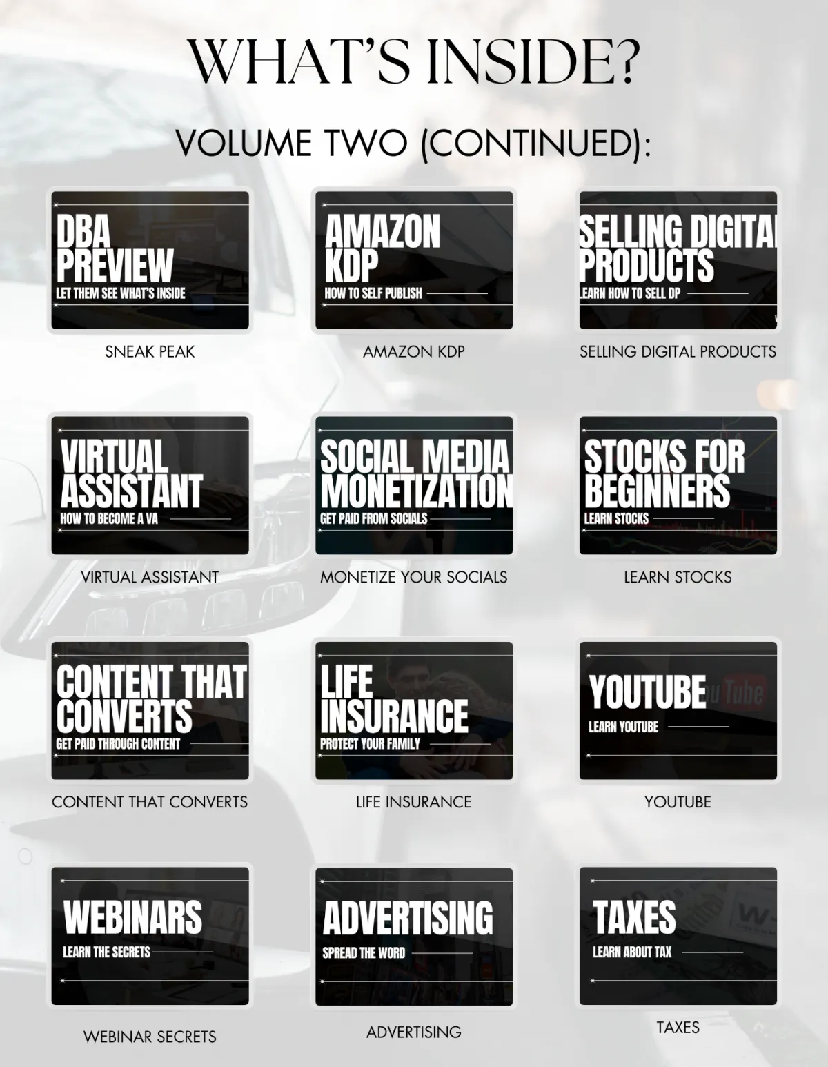 The perfect blend of some of the TOP courses out there + more! Why spend over $3,000+ on all of the courses individually when you can get it all for the price of ONE! LEARN new skills, DEVELOP new income streams, and start earning from your INVESTMENT!